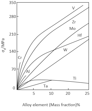 Effect of alloy elements on the ultimate strength of 1095°C recrystallized Niobium