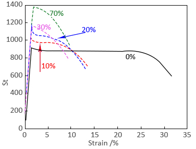 Room temperature tensile stress-strain curves of TB9 titanium alloy