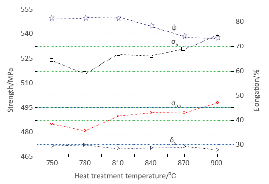 Tensile properties of the Ti-45Nb under different annealing temperature